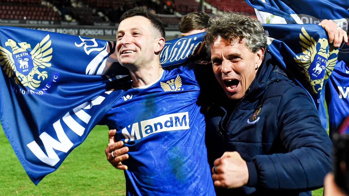 Perched high above the goal at East End Park on Tuesday evening, the scene was electric as St Johnstone secured the Championship title amidst jubilant cheers from approximately 3,000 fans who had made the journey.