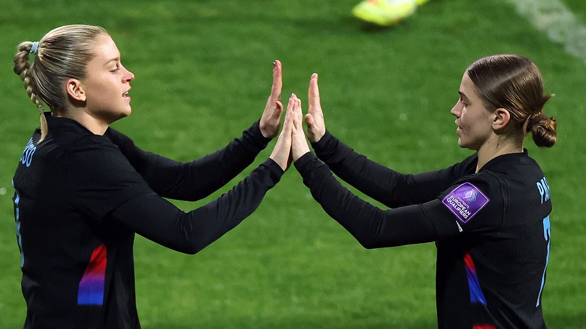 The celebrations from those in yellow did not last long though, with the referee almost immediately pointing to the penalty spot at the other end after Lauren Hemp was brought down in the area, and Georgia Stanway converted. The Bayern Munich midfielder, who is out of contract in the summer and linked with a move back to the WSL, added her own brace with a wonderful effort from the edge of the penalty area another six minutes later.