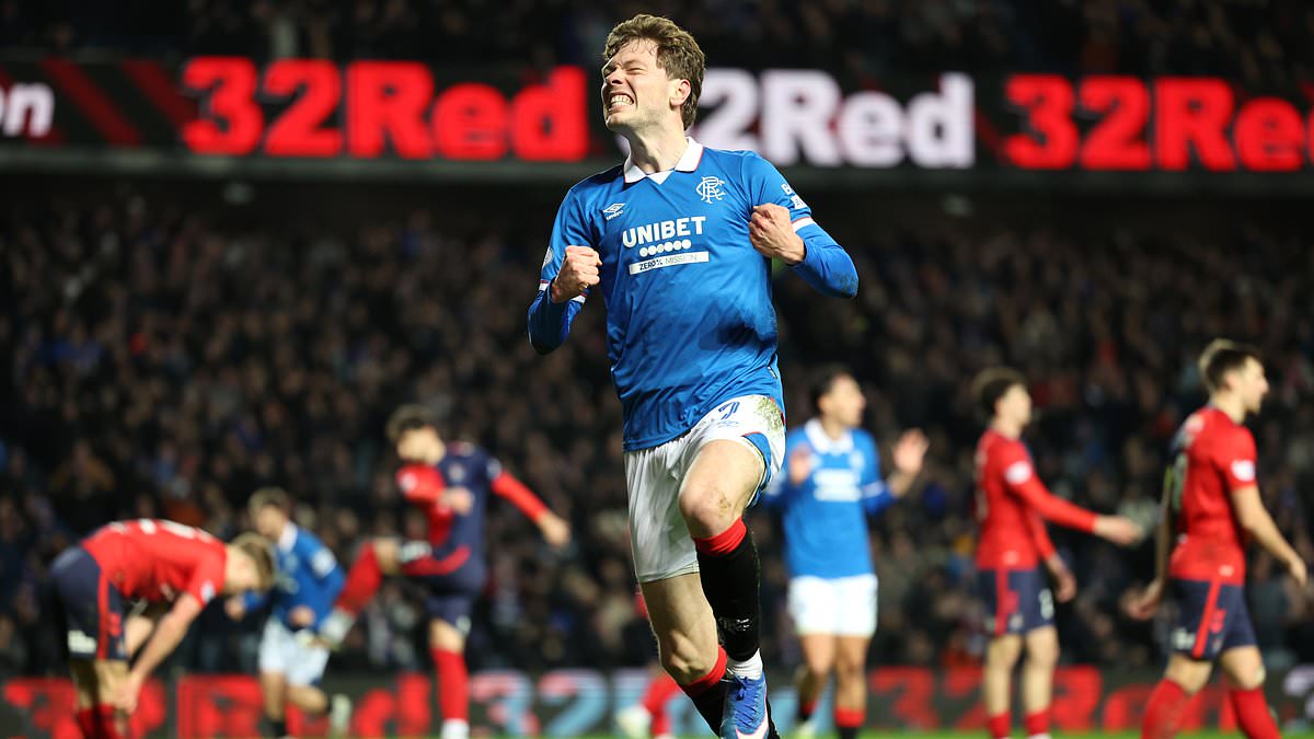 Andreas Skov Olsen put Rangers three goals up and eased some of the nerves around Ibrox