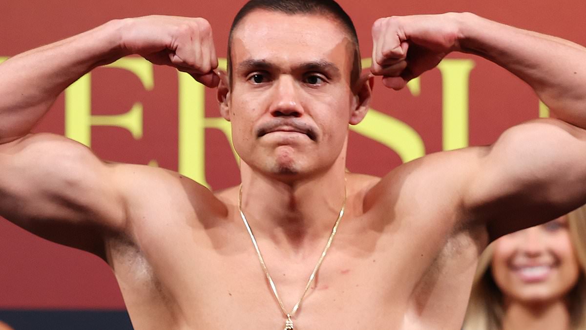 “Bring it on. Simple,” Tszyu declared after tipping the scales at 157 pounds during Saturday’s weigh-in at the WIN Entertainment Centre.