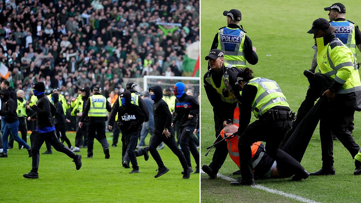 The disgraceful scenes started when Celtic fans spilled on to the pitch after their team's win
