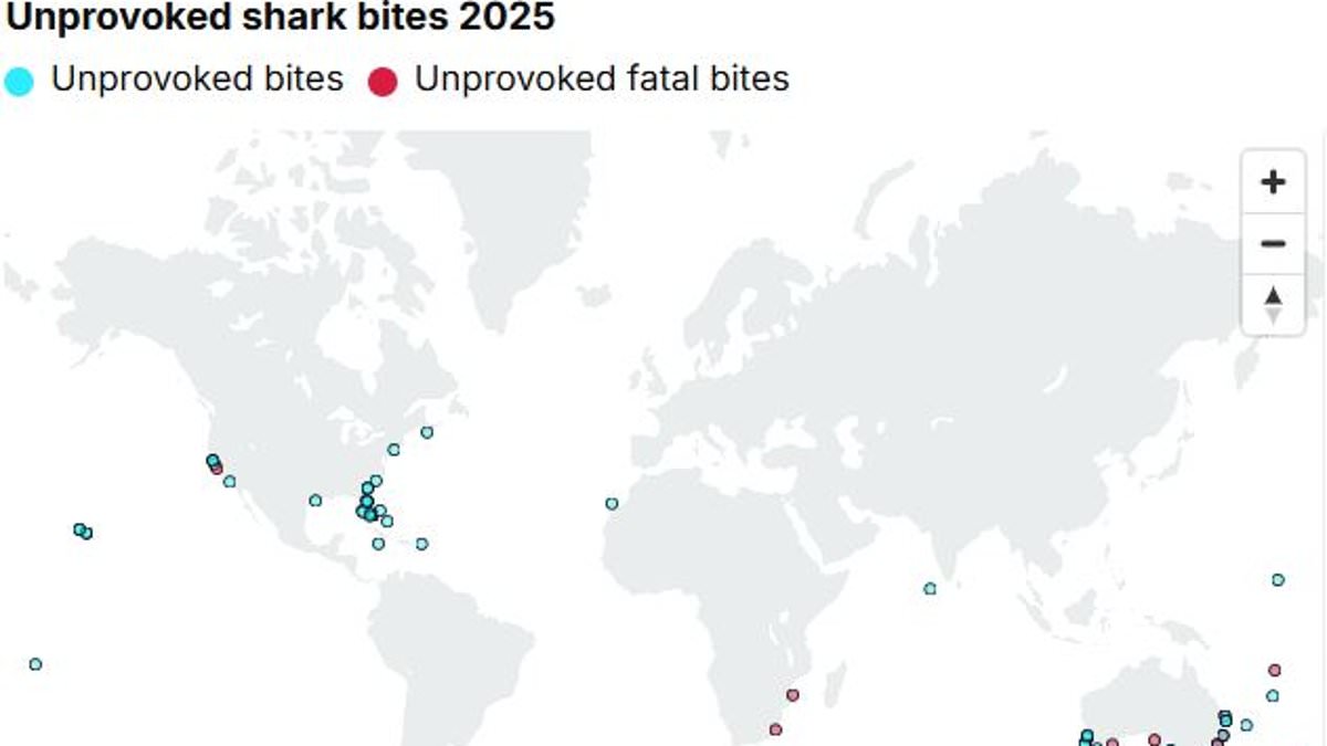The International Shark Attack File’s yearly report has found that there were 65 shark attacks in 2025, just below the 20–year average of 71