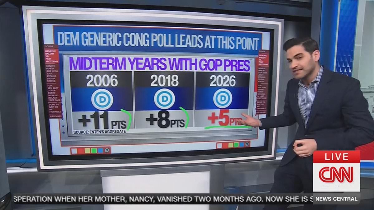 In a recent CNN poll, Republicans are trailing behind Democrats by five points in approval ratings, amidst growing public discontent over President Donald Trump’s decision to bomb Iran. During Monday’s segment of News Central, Chief Data Analyst Harry Enten shared insights on this development, particularly in the context of the forthcoming midterm elections. Enten shared with anchor John Berman that this lead, while present, is historically low for Democrats when considering the backdrop of a Republican presidency. Berman queried whether this margin was significant enough for Democrats to seize control of the House or Senate.