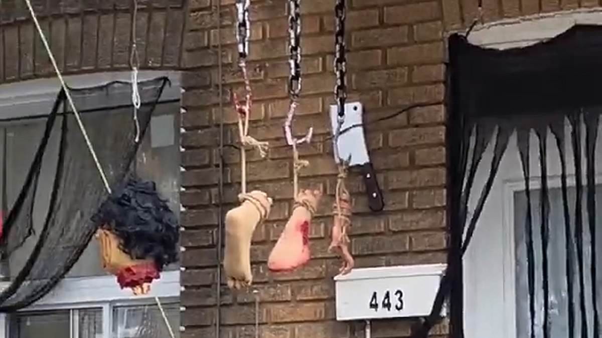 Palestinian refugee Samar Alkhdour has criticized her neighbors for displaying gory Halloween decor outside their Montreal home