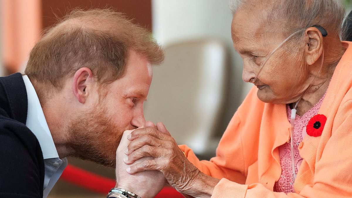 One heartfelt moment captured Prince Harry gently kissing the hand of 91-year-old veteran Villa Shah.